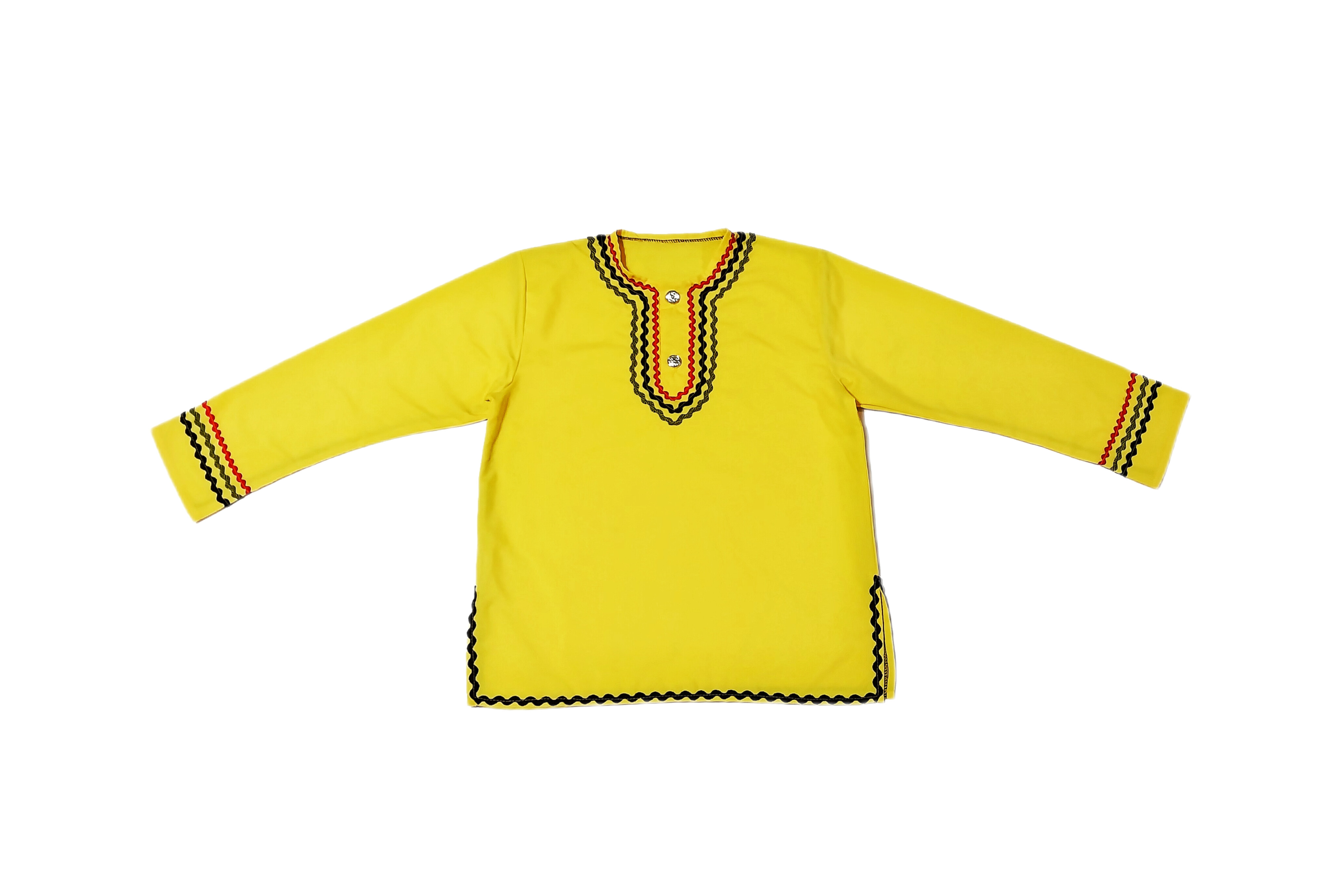 لباس شامل چهار تیکه بلوز و شلوار و جلیقه و کلاه می باشد