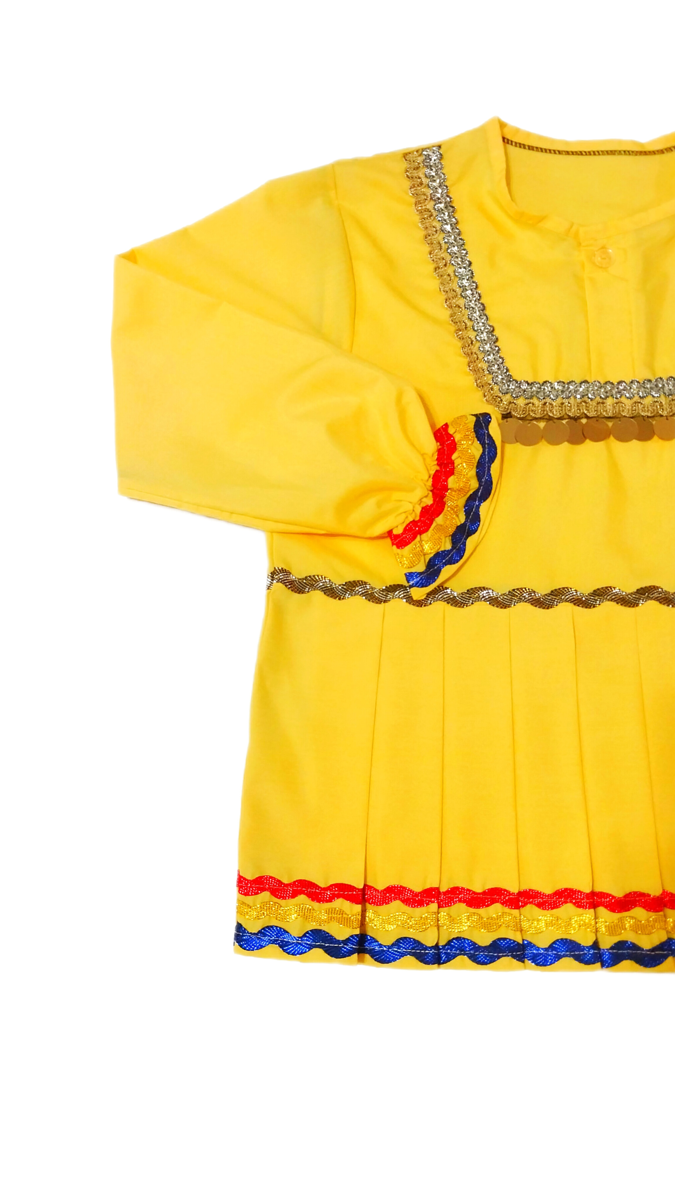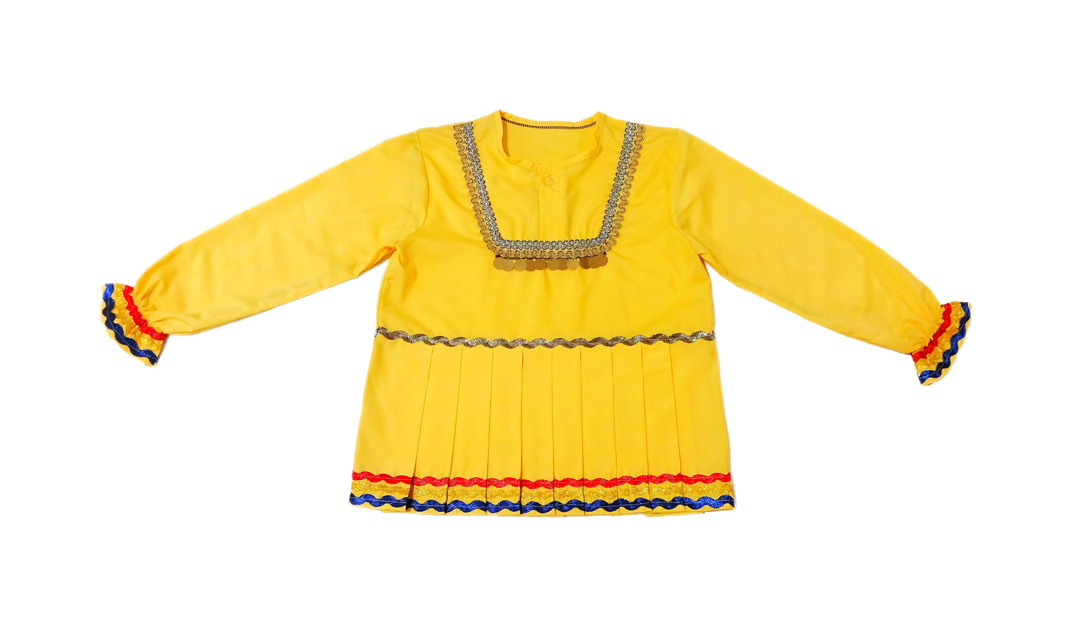 لباس شامل بلوز و دامن و جلیقه هست اگه کلاه و روسری هم میخواید میتونید به همراه لباس سفارش بدید. چین دامن 3ونیم متر هست