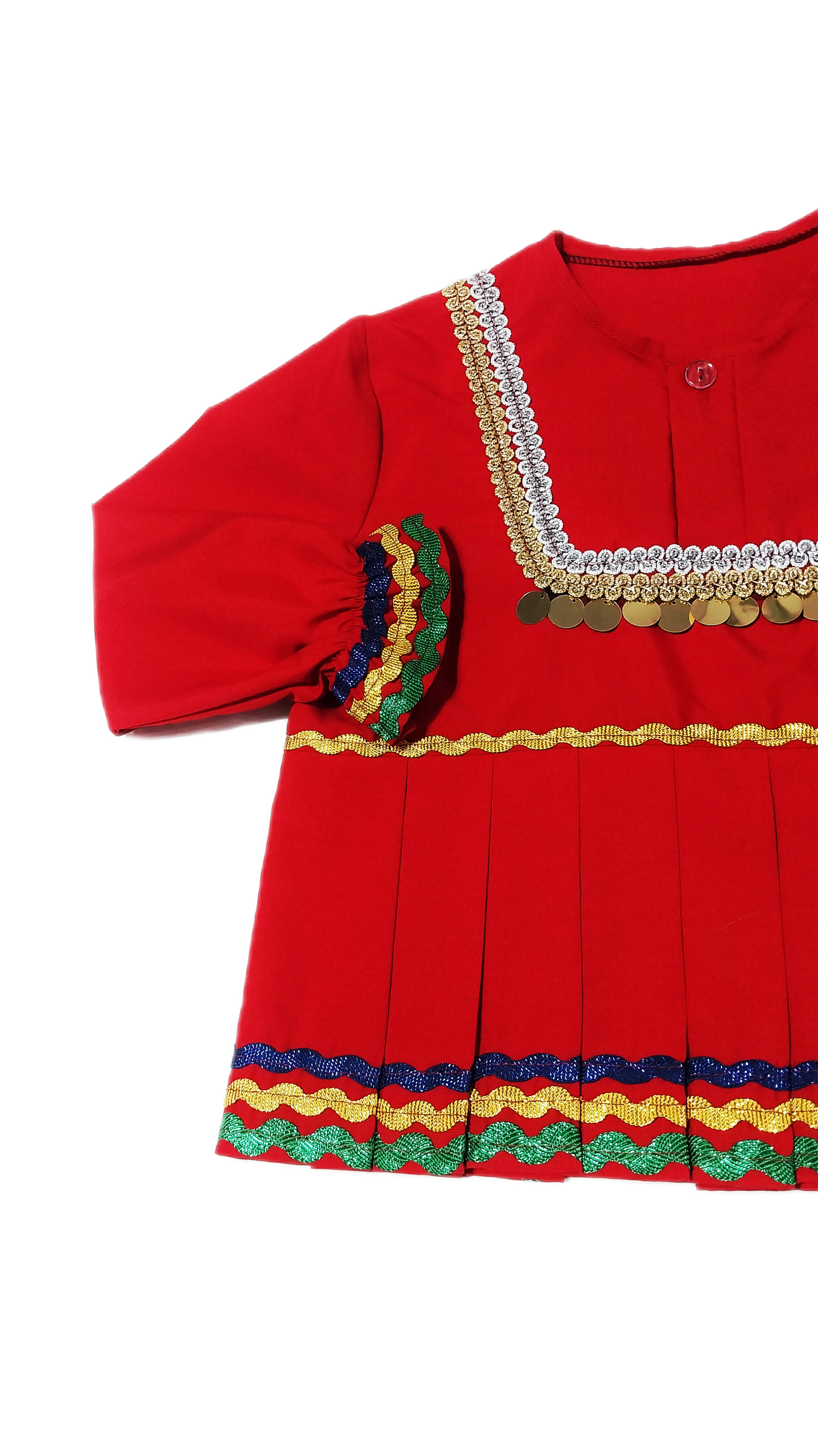 لباس شامل بلوز و دامن و جلیقه هست اگه کلاه و روسری هم میخواید میتونید به همراه لباس سفارش بدید.چین دامن 3ونیم متر هست